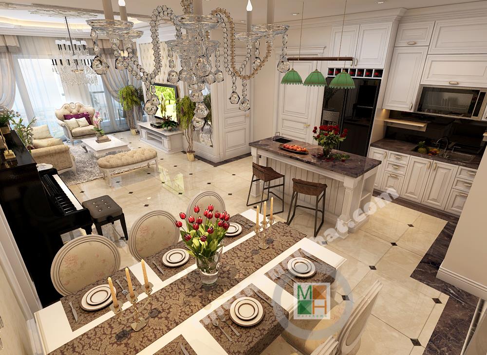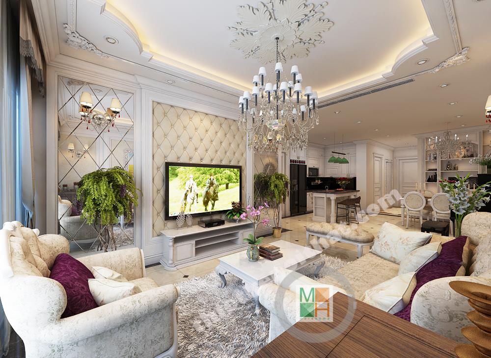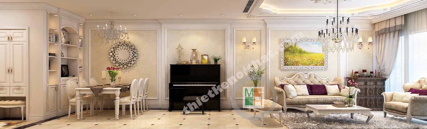 Thiết kế nội thất gỗ tại chung cư tân cổ điển Thăng Long Number One