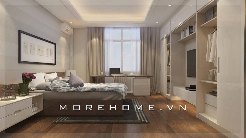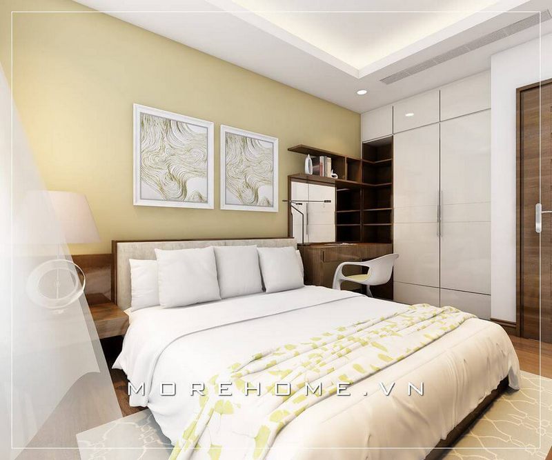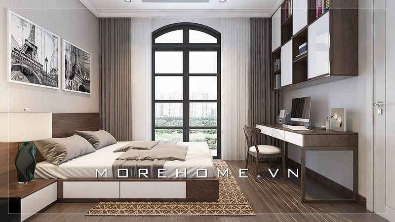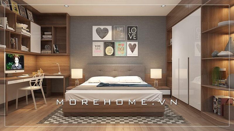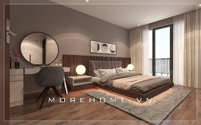 Thiết kế giường ngủ chung cư hiện đại, sang trọng với tone màu nâu trầm chủ đạo