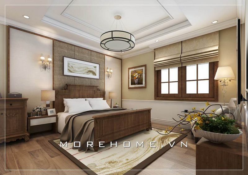 Thiết kế giường ngủ ông bà đẹp với gam màu nâu tầm sang trọng