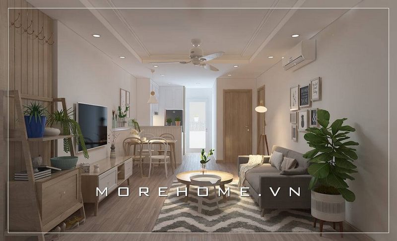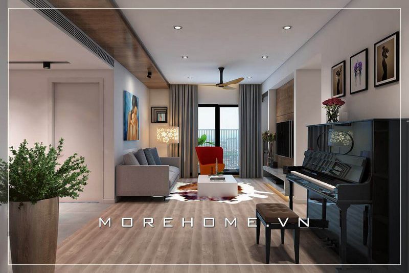 Bố trí không gian phòng khách căn hộ chung cư hiện đại đẹp.
