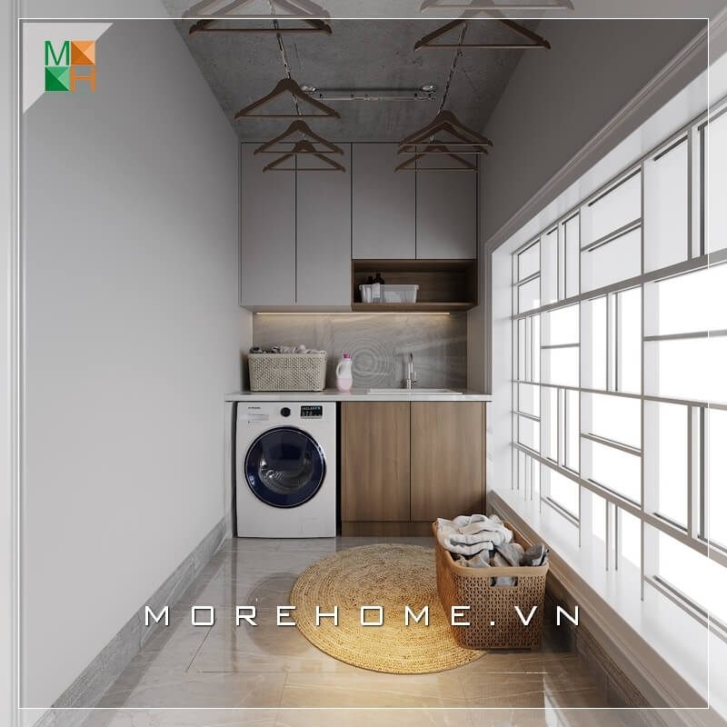 Phòng giặt và phơi đồ mang phong cách hiện đại trẻ trung được thiết kế đầy tiện nghi cho công việc nhà trở nên đơn giản hơn.